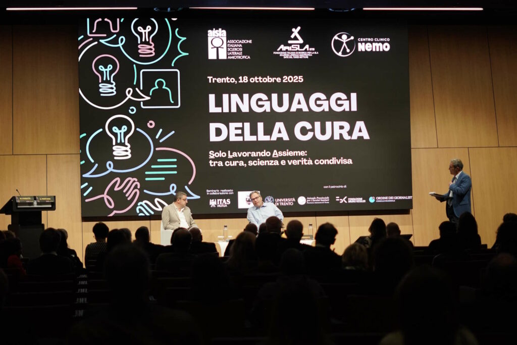 Milano/Trento, 21 ottobre 2025– Una sala gremita all’ITAS Forum di Trento ha accolto sabato 18 ottobre il seminario “Linguaggi della Cura: Solo lavorando assieme – tra scienza, comunicazione e verità condivisa”, promosso da AISLA, insieme a Fondazione ARISLA e ai Centri Clinici NeMO, con il patrocinio della Provincia autonoma di Trento, Università di Trento, APSS, Fondazione Bruno Kessler e Ordine Nazionale dei Giornalisti.