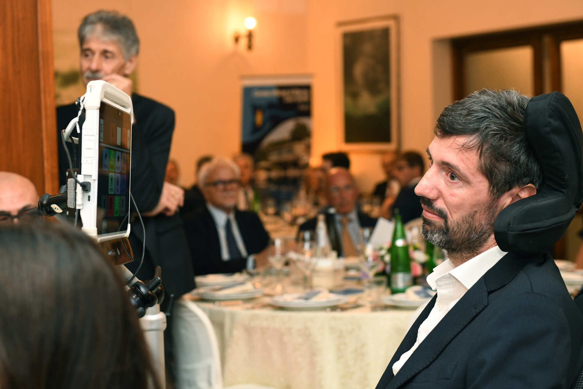 Ispiratore della serata è Francesco Lorenzini, il cui valore è stato riconosciuto pubblicamente con la consegna di una targa da parte di Uniport. La sua esperienza con la Sla è diventata generatrice di una rete di solidarietà che oggi si traduce in speranza concreta. Dopo la diagnosi nel 2023, da paziente del Centro NeMO di Milano e socio AISLA, Francesco ha scelto di mettere al servizio della cura e della ricerca, energia, creatività e rete professionale. Nel suo unire mondi e costruire legami si racchiude tutto il senso dell’evento. Un messaggio, il suo, che ha affidato direttamente agli ospiti, attraverso un toccante saluto digitato con il puntatore oculare sul comunicatore: