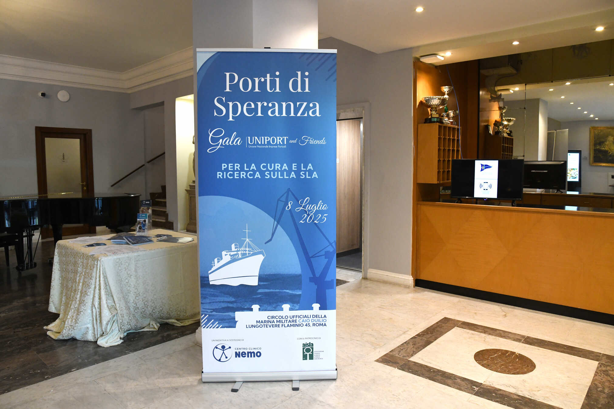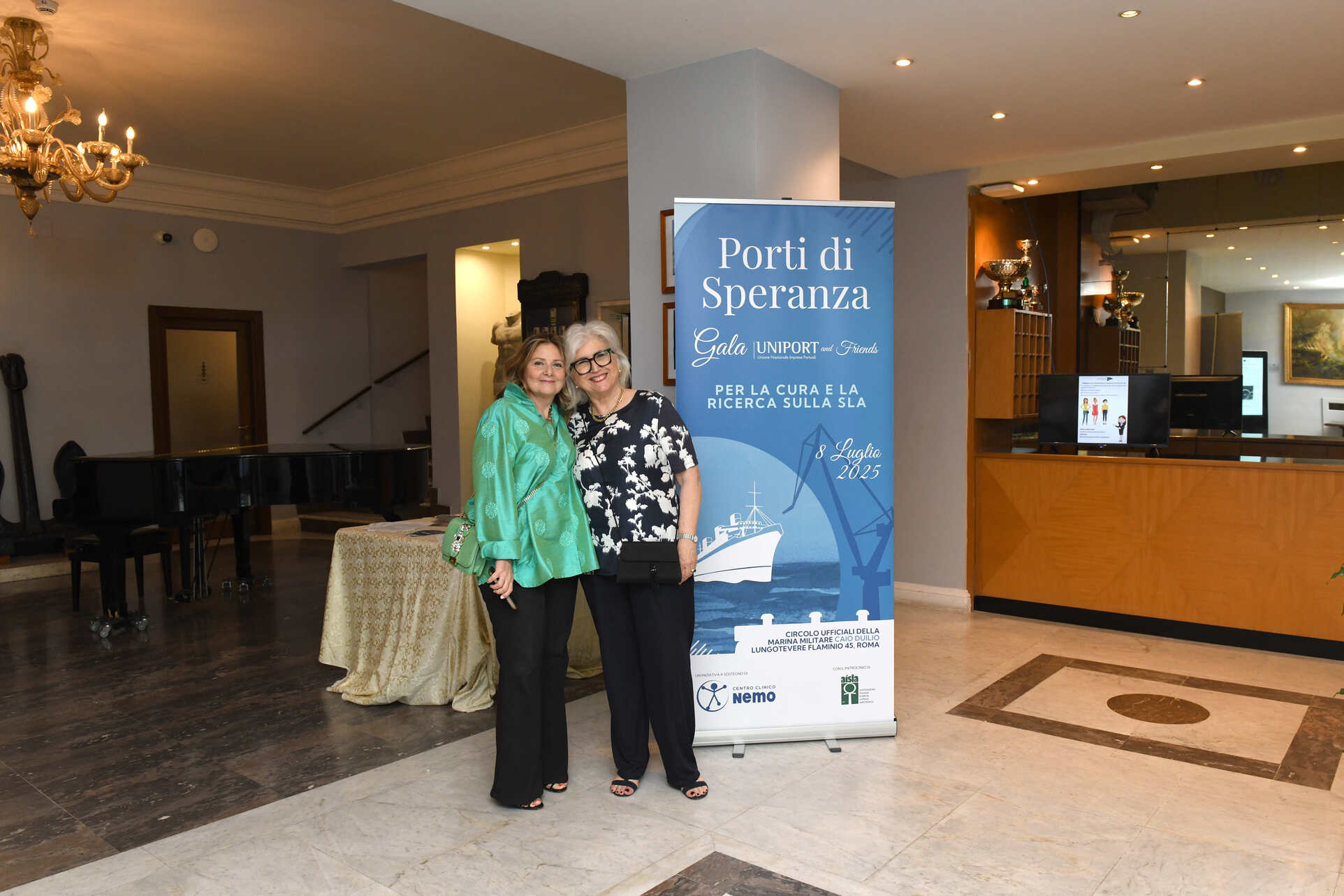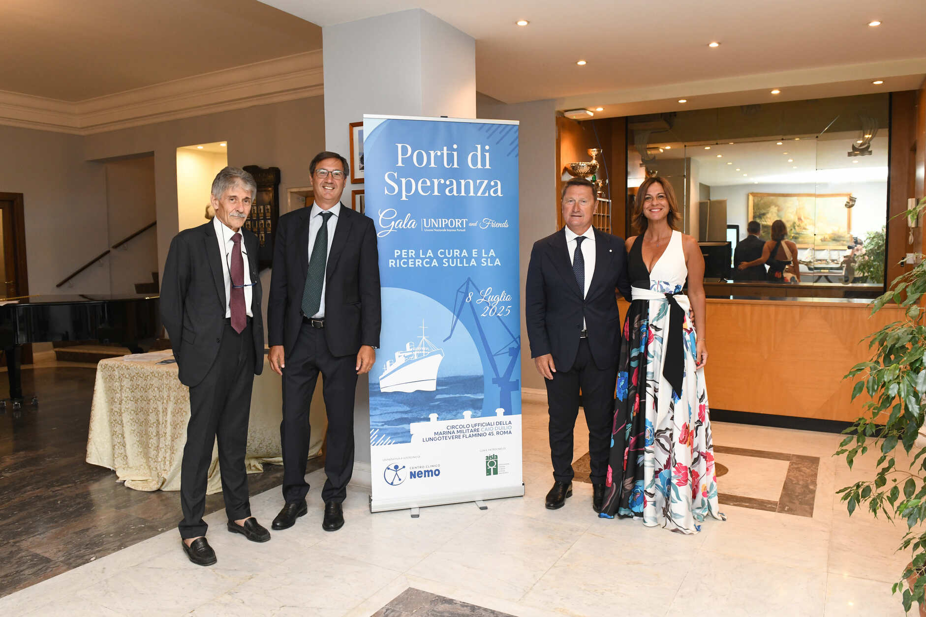 Roma, 9 luglio 2025 – Come il porto è da sempre luogo di approdo e protezione per chi affronta il mare, così la serata di gala “Porti di Speranza. Uniport & Friends” ha voluto essere un segno concreto di solidarietà per chi vive ogni giorno la sfida della Sla. Promossa ieri, martedì 8 luglio, da Uniport – l’associazione nazionale dei terminalisti e delle imprese portuali – l’iniziativa si è svolta nella prestigiosa cornice del Circolo Ufficiali della Marina Militare “Caio Duilio” di Roma, a sostegno dei Centri Clinici NeMO, il network nazionale punto di riferimento per la cura e la ricerca sulla SLA e le malattie neuromuscolari. Con il patrocinio di AISLA, l’Associazione Italiana Sclerosi Laterale Amiotrofica, l’evento ha visto la partecipazione delle istituzioni nazionali, insieme a soci, ospiti e amici, uniti dall’intento comune di contribuire a cambiare la rotta di una patologia neurodegenerativa grave, per la quale ancora non esiste una cura risolutiva.