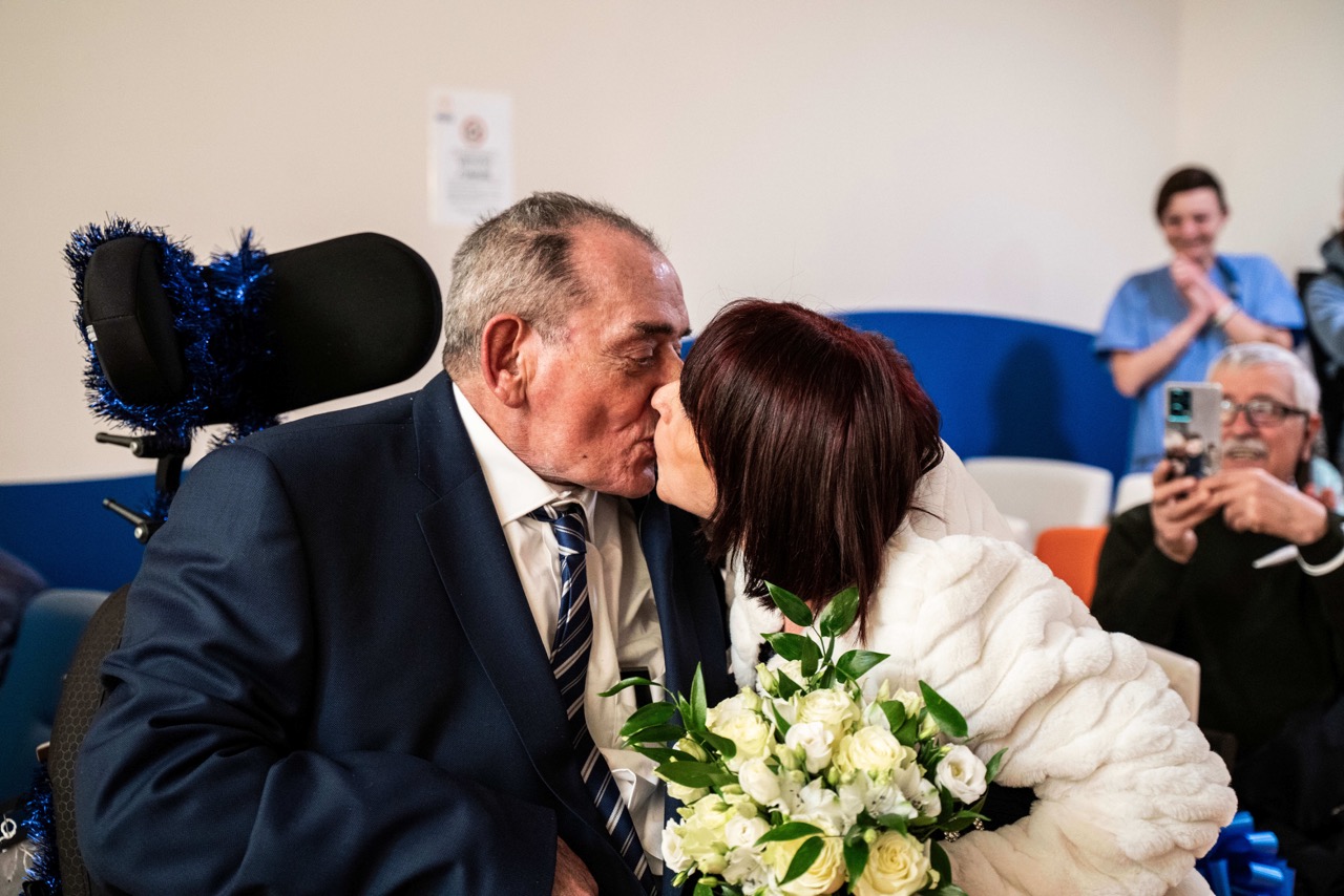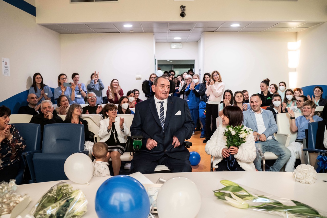 Milano, 19 dicembre – In un’atmosfera carica di emozione, Giovanni e Anna hanno celebrato il loro matrimonio al Centro Clinico NeMO di Milano, dedicato alla cura e alla ricerca sulle malattie neuromuscolari e neurodegenerative, attivo dal 2008 all’interno dell’ASST Grande Ospedale Metropolitano Niguarda. Circondati da familiari, figli e nipotini, gli sposi si sono scambiati le promesse, sostenuti dall’équipe clinica, che ha condiviso con loro questo momento unico, testimone di un amore che ha saputo attendere e diventato ancora più forte nell’esperienza di malattia.