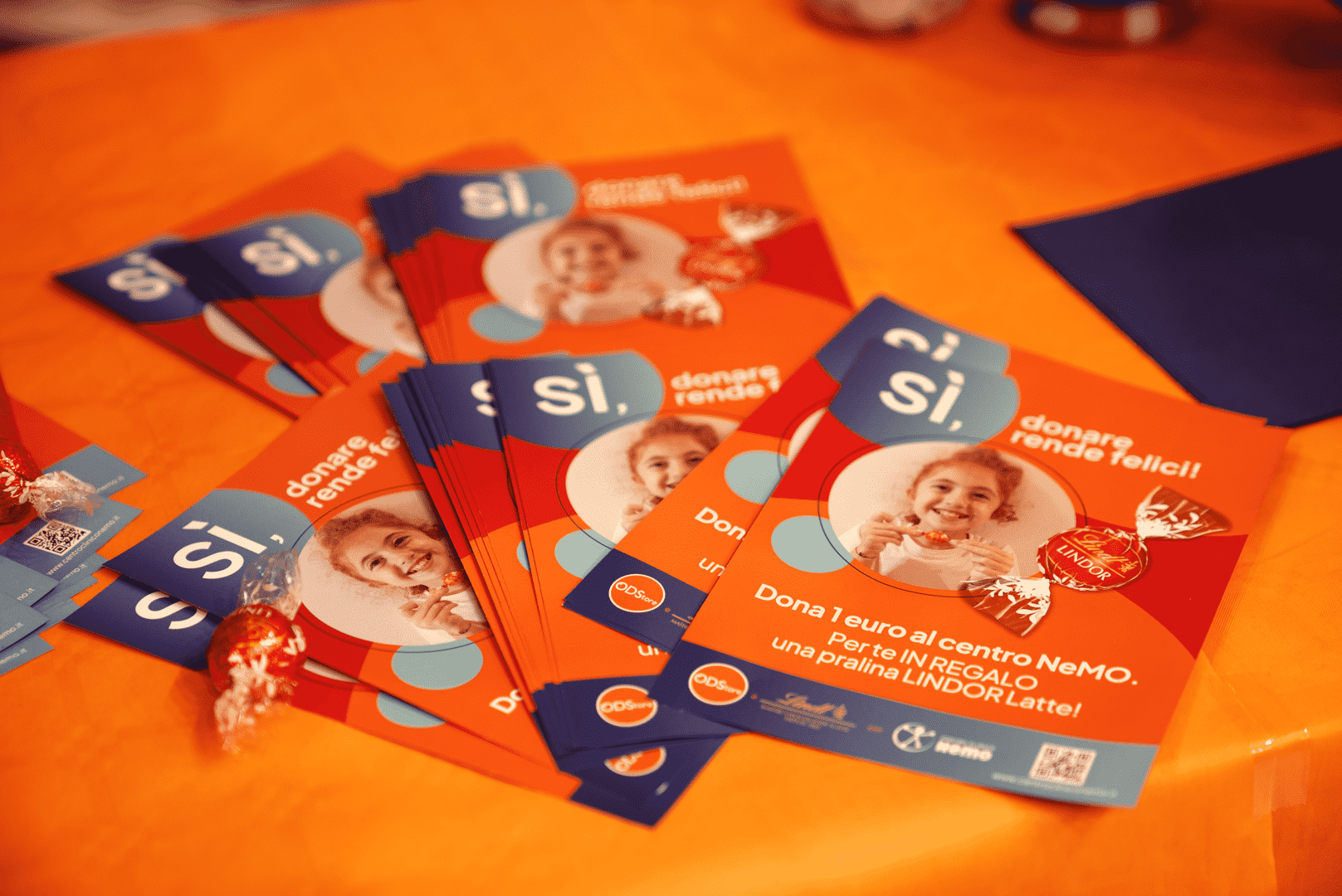Fino all’8 dicembre, in tutti i 130 punti vendita ODStore d’Italia, sarà possibile donare 1 euro in cassa e ricevere una pralina Lindor al latte come segno di ringraziamento. Ogni cioccolatino significa un gesto concreto di sostegno dell’Ambulatorio dell’Affettività dei Centri NeMO, un progetto che si prende cura dei bambini e dei ragazzi con SMA, Distrofie Muscolari e altre patologie neuromuscolari, accompagnandoli insieme ai loro genitori nell’affrontare il percorso di malattia e di crescita, di educazione e di relazione con gli altri.